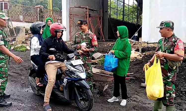 PEMALANG | DN – Dalam rangka meningkatkan kepedulian sosial serta mempererat hubungan dengan masyarakat di bulan suci Ramadhan, anggota Koramil 12/Watukumpul Kodim 0711/Pemalang bersama Persit Kartika Chandra Kirana Ranting 13/Watukumpul melaksanakan kegiatan pembagian takjil kepada warga dan para pengguna jalan yang melintas di depan lokasi pembangunan Koperasi Desa/Kelurahan Merah Putih (KDKMP) Desa Majakerta, Kecamatan Watukumpul Kabupaten Pemalang Jawatengah. Jumat(06/03/2026)
