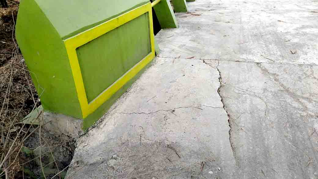 Namun, jembatan yang baru berusia setahun tersebut kini mengalami keretakan. Diduga, proses pengerjaan menggunakan bahan material berkualitas rendah. Pembangunan jembatan ini menggunakan anggaran DD senilai Rp 100.000.000 dengan ukuran volume 3.00 M x 5.00 M. Sayangnya, tidak jelas siapa yang mengerjakan proyek ini karena tidak ada informasi yang tertera di prasasti bangunan.