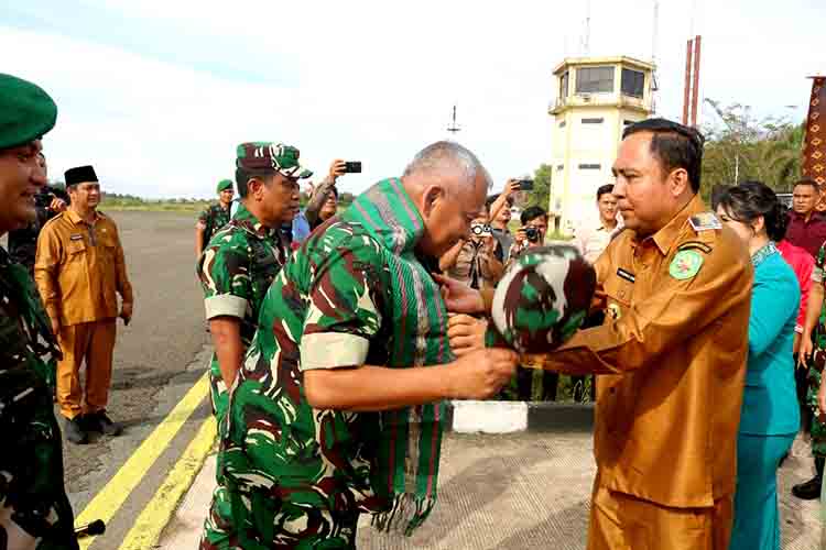 KUTAI BARAT – DN | Pangdam VI/Mulawarman Mayjen TNI Rudy Rachmat Nugraha, S.I.P., M.Sc. bersama rombongan tiba di Bandara Melalan, Kecamatan Melak, Kabupaten Kutai Barat, Selasa (04/11/25). Kedatangan Pangdam beserta rombongan dalam rangka menghadiri puncak peringatan Hari Ulang Tahun ke-26 Kabupaten Kutai Barat Tahun 2025 sekaligus melaksanakan kunjungan kerja ke Brigif TP 85/BTC di Kecamatan Jempang.