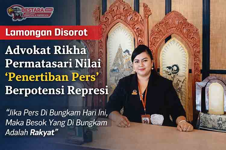 SURABAYA | DN – Polemik kebijakan “penertiban pers” di Lamongan memantik sorotan tajam. Advokat Rikha Permatasari menilai langkah tersebut bukan sekadar kebijakan administratif, melainkan indikasi represi terhadap kebebasan pers yang dijamin konstitusi.