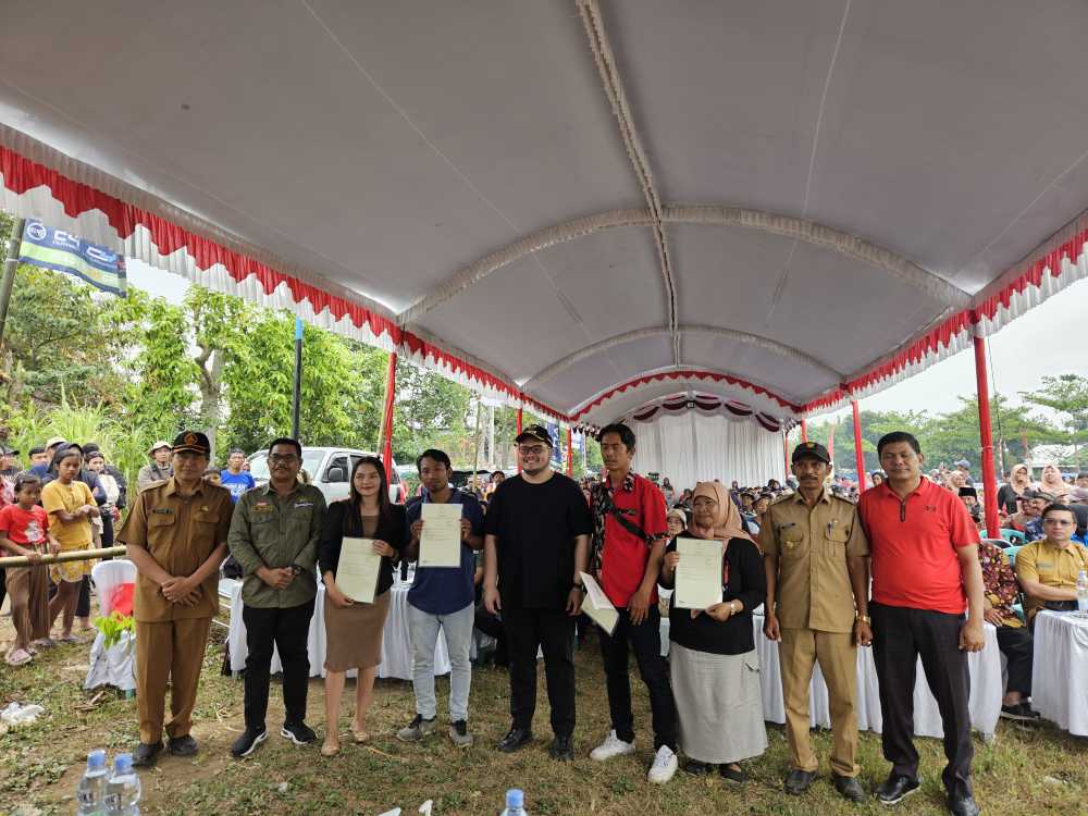 Di Kampungbaru ini kita bagikan sertifikat tanah kegiatan redistribusi sejumlah 380 sertifikat elektronik yang dibagikan untuk warga Desa Kampungbaru. Sertifikat elektronik ini secara fisik berbeda dengan sertifikat pada umumnya karena hanya satu lembar dan dilengkapi barcode.