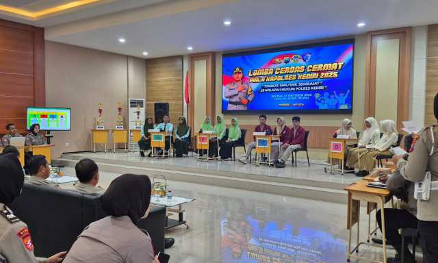 Sejak pagi, aula Wicaksana Laghawa Polres Kediri dipadati tepuk tangan para pelajar yang memberi dukungan untuk tim sekolah masing-masing.