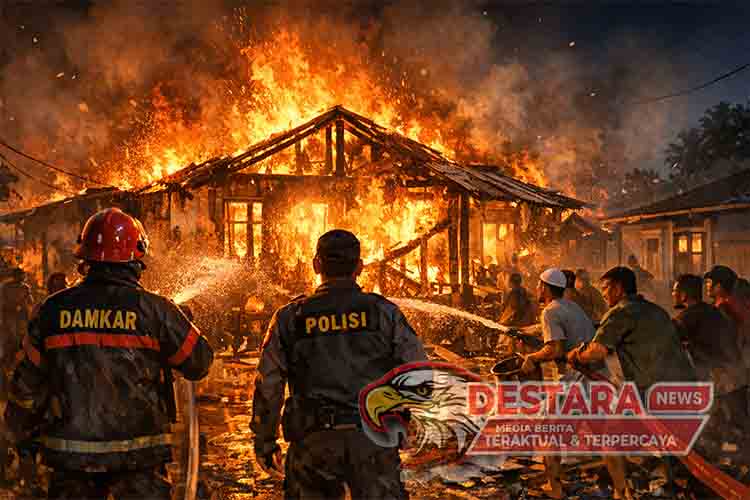 LAMONGAN | DN – Suasana jelang malam takbiran Idul Fitri 1447 H di Desa Kemantren, Kecamatan Paciran, Kabupaten Lamongan, berubah mencekam setelah sebuah rumah milik warga bernama Badri dilalap api pada Jumat (20/3/2026) sekitar pukul 18.25 WIB.