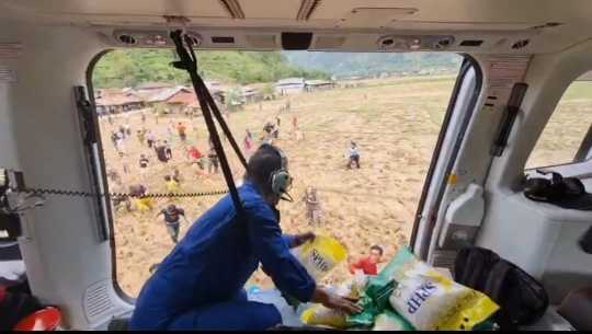 “Ketika helikopter perlahan mendekat ke sebuah desa terdampak, dada kami ikut sesak. Kami tahu, apa yang kami bawa di perut pesawat ini tidak sebanding dengan lelah dan hilang yang mereka rasakan di bawah sana,” ujar salah satu awak yang terlibat dalam misi.