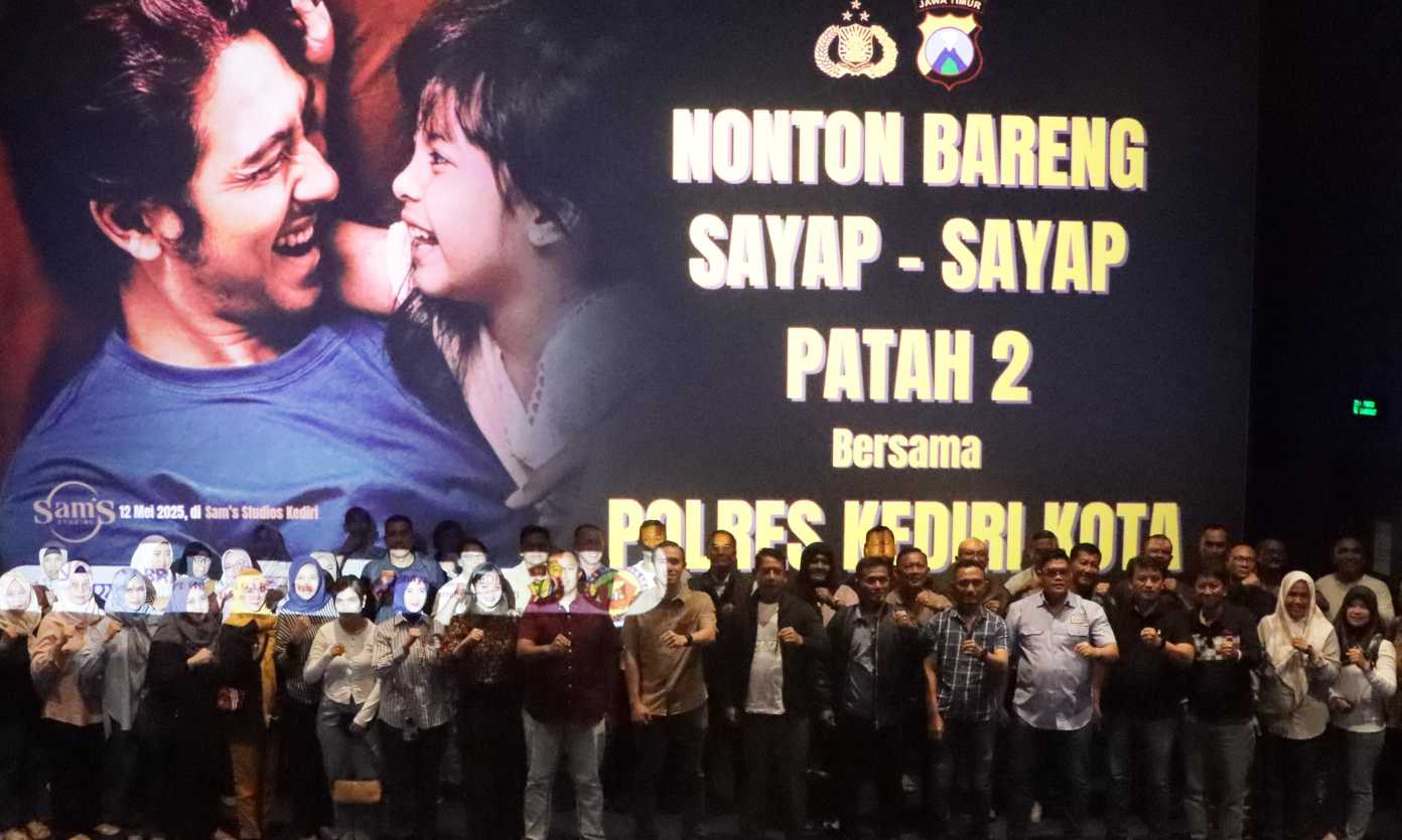 KEDIRI KOTA | DN – Keluarga besar Polri dan masyarakat di Kota Kediri antusias mengikuti kegiatan nonton bareng (nobar) film Sayap – Sayap Patah 2, di Sam’s Studio Kota Kediri, Senin (12/5/2025).