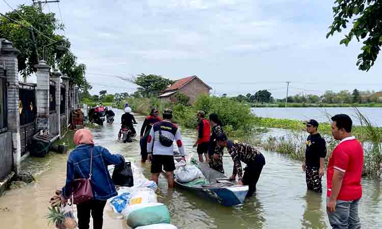 PAC GP Ansor Kalitengah Bersama PT SNR Wujudkan Jalan Darurat di Tengah Genangan Bengawan Njeroh