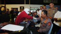 Momen Kapolri Ikut Donor Darah saat Hadiri Baksos HUT ke-53 Buruh KSPSI