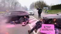 Aktivis Lingkungan Blokir Jalan Menuju KTT Energi Nuklir di Brussels