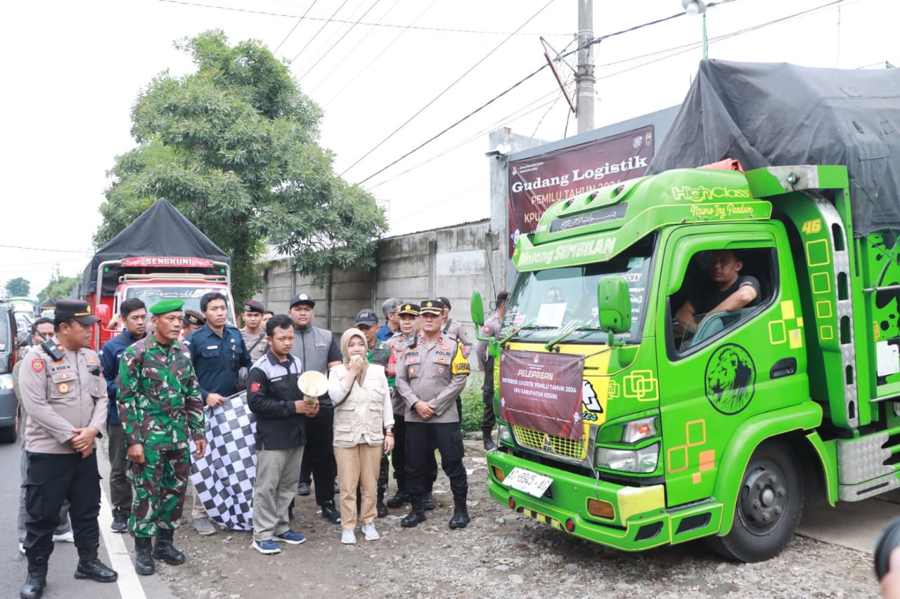 KEDIRI (DN) – Memasuki H-4 pemungutan suara Pemilu 2024, Polres Kediri Polda Jatim turunkan personel untuk melakukan pengamanan dan pengawalan pendistribusian logistik Pemilu, Sabtu (10/2/2024).