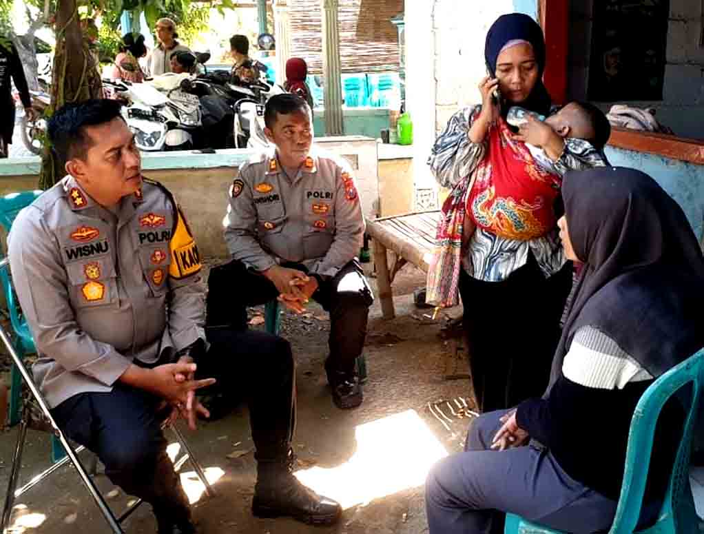Nampak AKBP Wisnu Wadana bersama Kapolsek Dringu Iptu Anshori dan Tim Dokkes Polres Probolinggo berbincang dengan orang tua dan nenek korban.