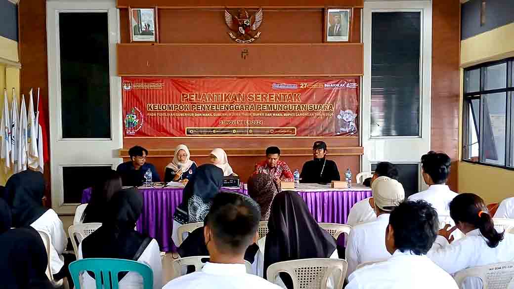 LAMONGAN | DN – Dalam rangka penetapan dan pengangkatan (Pelantikan) 49 anggota Kelompok Penyelenggara Pemungutan Suara (KPPS) untuk 7 Tempat Pemungutan Suara (TPS) di Desa Jotosanur, Kecamatan Tikung, Kabupaten Lamongan, pelantikan dilaksanakan pada Kamis (07/11/2024).