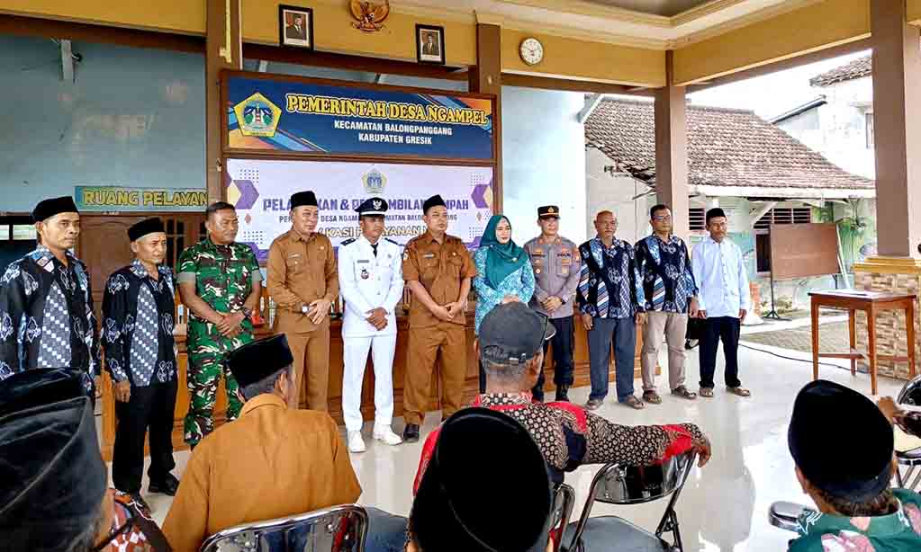 GRESIK | DN – Pemerintah Desa Ngampel, Kecamatan Balongpanggang, Kabupaten Gresik, sukses menggelar acara pelantikan dan pengambilan sumpah jabatan perangkat desa baru untuk posisi Kasi Pelayanan. Acara yang berlangsung di Aula Kantor Desa pada Selasa (27/5/2025) pukul 09.00 WIB ini bertujuan meningkatkan kualitas layanan bagi masyarakat setempat.