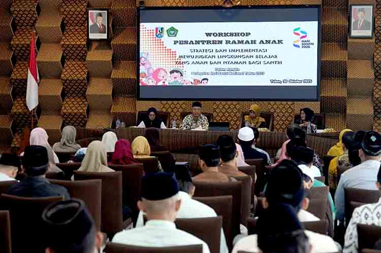 TUBAN – DN | Pemerintah Kabupaten Tuban bersama Kantor Kementerian Agama (Kemenag) Tuban menggelar Workshop Pesantren Ramah Anak sebagai bagian dari upaya memperkuat peran pondok pesantren dalam pembangunan karakter anak bangsa. Kegiatan ini berlangsung di Gedung KORPRI Tuban, Kamis (30/10/2025), dan diikuti oleh 100 pengasuh pesantren dari berbagai wilayah di Kabupaten Tuban.