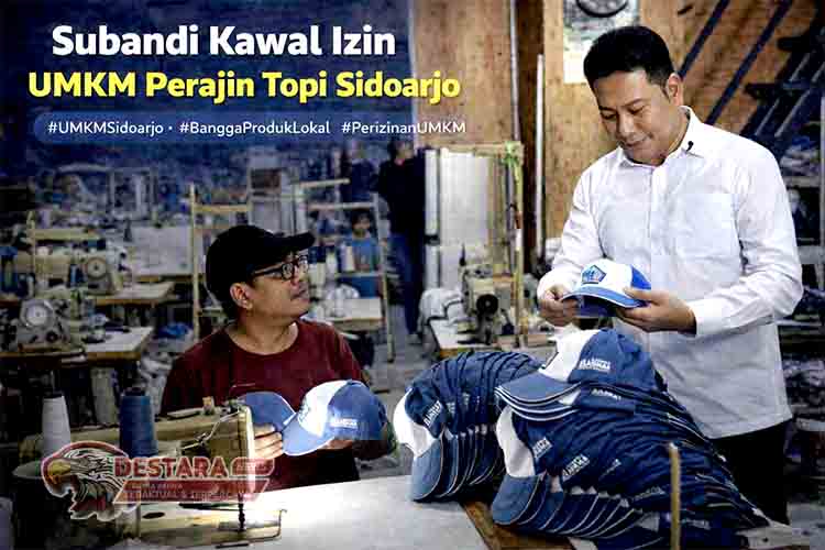 SIDOARJO | DN – Pemerintah Kabupaten (Pemkab) Sidoarjo menegaskan komitmennya dalam mendukung perkembangan Usaha Mikro Kecil dan Menengah (UMKM). Hal itu disampaikan langsung oleh Bupati Sidoarjo H. Subandi saat melakukan inspeksi mendadak (Sidak) ke lokasi perajin topi Master Konveksi di Desa Punggul, Kecamatan Gedangan, Jumat (24/4).