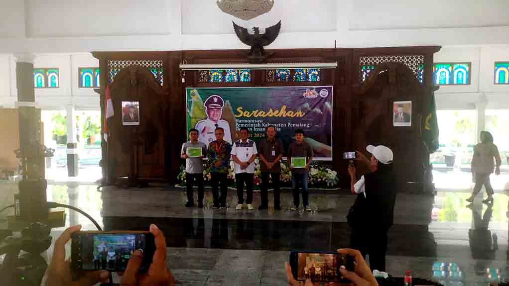 Acara Sarasehan dengan tema “Harmonisasi pemerintah kabupaten pemalang dengan insan media”. Dalam kegiatan tersebut dihadiri Bupati Pemalang H. Mansur Hiidayat, ST., Setda Heriyanto, S.Pd, M.si, Kadiskominfo Joko Ngatmo beserta jajaran pemerintah Kabupaten Pemalang.