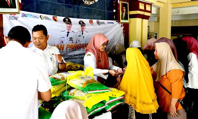 TUBAN | DN – Pemerintah Kabupaten (Pemkab) Tuban kembali menghadirkan program Gerakan Pangan Murah (GPM) sebagai upaya menjaga stabilitas harga kebutuhan pokok. Kegiatan yang digelar bekerja sama dengan Bulog ini berlangsung serentak di 20 kecamatan, Rabu (28/1/2026), dan mendapat sambutan hangat dari masyarakat.