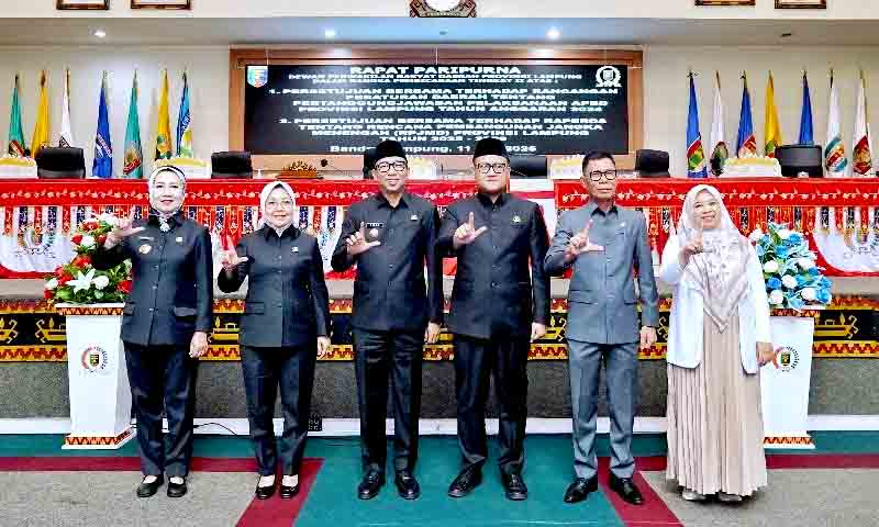 BANDAR LAMPUNG – DN | Pemerintah Provinsi Lampung bersama Dewan Perwakilan Rakyat Daerah (DPRD) Lampung resmi mengesahkan Rencana Pembangunan Jangka Menengah Daerah (RPJMD) periode 2025–2029 dalam Rapat Paripurna Tingkat II yang digelar di gedung DPRD Lampung, Jumat (11/7/2025).