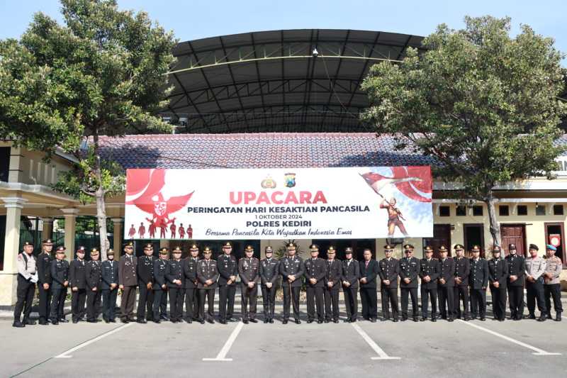 KEDIRI | DN – Memperingati Hari Kesaktian Pancasila, Polres Kediri Polda Jatim gelar upacara bertemakan ‘Bersama Pancasila Kita Wujudkan Indonesia Emas’, Selasa (1/10/2024).