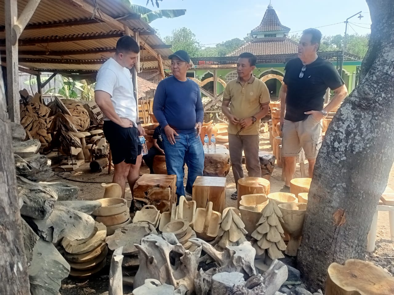 Buyer dari Australia, Mr. Tzion dan Mr. Daniel bersama eksportir kerajinan kayu jati dari Klaten, yakni CV Dollar Furniture, Abdullah, datang langsung ke tempat salah satu perajin kayu jati Dewi Ngubalan, Sunarno selaku owner UD Rumah Jati Exotic untuk melihat langsung produk hasil kerajinan olahan kayu jati.