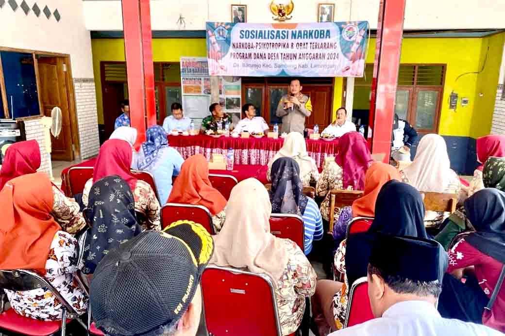 LAMONGAN | DN – Dalam upaya mencegah peredaran narkoba, psikotropika, serta obat terlarang, Kapolsek Sambeng IPTU Miftachul Choir menggelar sosialisasi di Balai Desa Barurejo, Kecamatan Sambeng, Lamongan, pada Rabu, 4 Desember 2024.