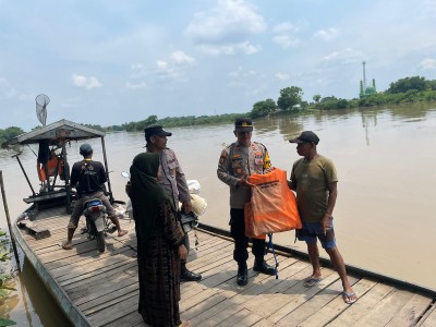 Kapolsek Laren, Iptu Witono Hariadi, SH, menyambangi tempat penyeberangan yang biasa digunakan oleh warga Desa Keduyung-Brumbun di sepanjang aliran Sungai Bengawan Solo untuk memanfaatkan jasa penyeberangan dengan perahu.