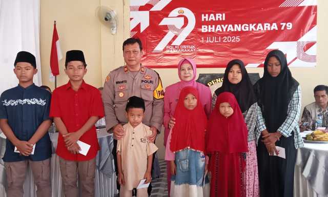 KEDIRI | DN – Peringatan hari Bhayangkara ke-79, Polri di Mapolsek Kandangan, pada Jumat (4/7/2025). Pada kegiatan tersebut, Polsek Kandangan mengadakan bakti sosial religi dengan memberikan santunan kepada anak yatim-piatu.