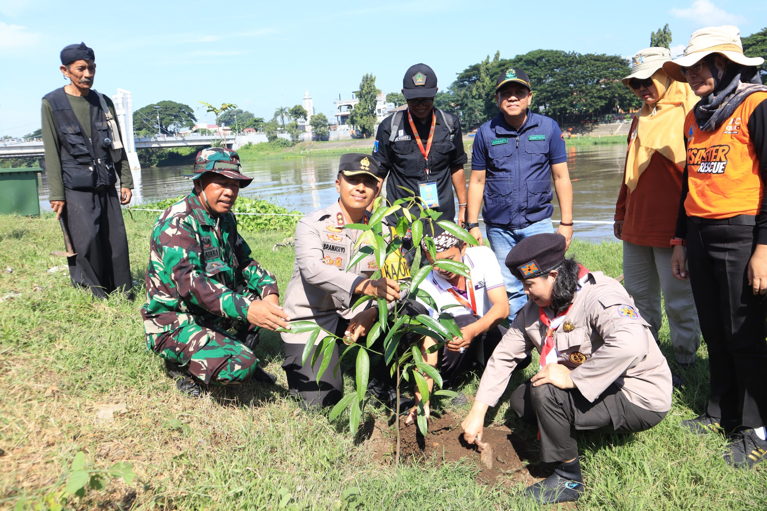 KEDIRI KOTA (DN)– Polres Kediri Kota bersama unsur Forkopimda turut merayakan Hari Bumi ke 54 Tahun 2024 dengan menggelar penanaman pohon di daerah aliran sungai Brantas dan melepas ribuan bibit ikan ke Sungai Brantas Kota Kediri, Sabtu (27/4/24)