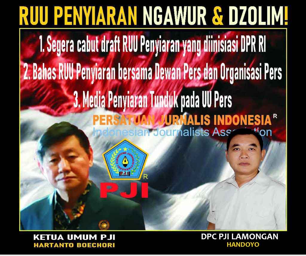 SURABAYA | DN – Persatuan Jurnalis Indonesia (PJI) dengan tegas menolak draft Rancangan Undang-Undang (RUU) Penyiaran yang diinisiasi oleh DPR RI. PJI menilai RUU tersebut dinilai tidak hanya ngawur, namun juga dianggap dzolim terhadap kebebasan pers dan profesionalisme media penyiaran di Indonesia.