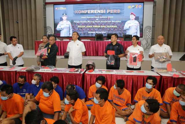 “Pada Operasi Sikat Semeru 2024 ini Ditreskrimum Polda Jatim dan Polres jajaran berhasil mengungkap 1.380 kasus, dengan total tersangka 1.120 orang yang telah dilakukan penahanan di Rutan masing-masing Satker,”kata Kombes Dirmanto.