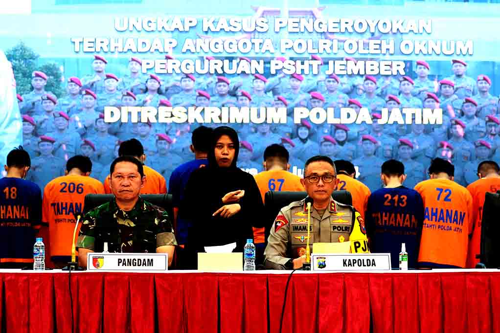 Dalam kesempatan ini, Kapolda Jatim Irjen Pol Imam Sugianto menjelaskan, dalam peristiwa pengeroyokan anggota Polisi yang dilakukan oleh oknum anggota PSHT di Jember, Polisi sebelumnya telah mengamankan sebanyak 22 orang.