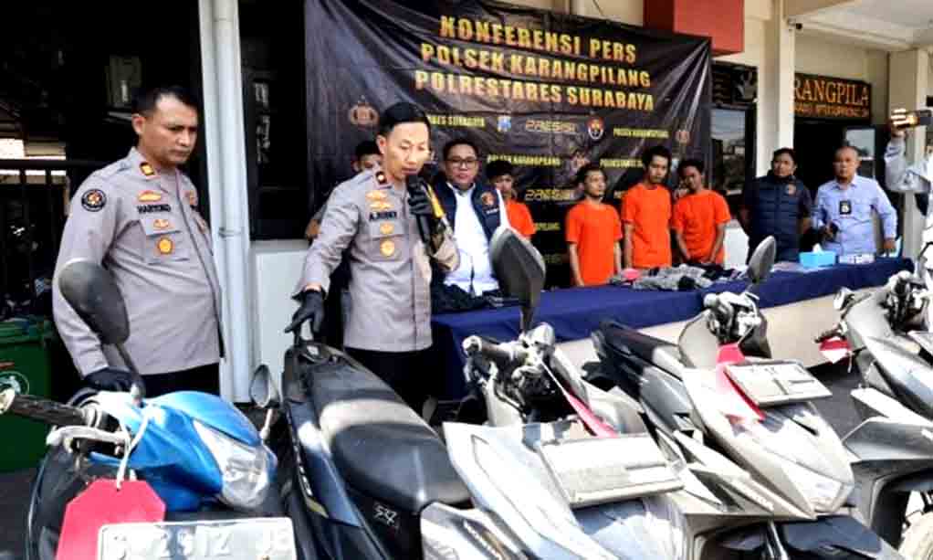 SURABAYA |DN – Tim Anti Bandit Polsek Karangpilang, Polrestabes Surabaya, menangkap komplotan pencuri motor yang beraksi di 21 lokasi berbeda di Kota Surabaya.