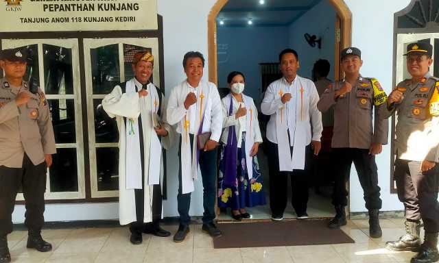 Pengamanan personel Polsek jajaran di wilayah binaan masing-masing, serta didukung patroli preventif dari Sat Samapta Polres Kediri. Kehadiran petugas terlihat sejak sebelum ibadah dimulai hingga kegiatan selesai, termasuk melakukan sterilisasi area gereja dan pengaturan di sekitar lokasi.