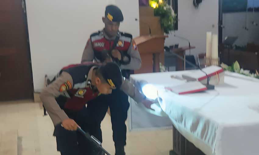 Kegiatan sterilisasi ini dilakukan oleh personel Samapta Polres Blitar Kota Polda Jatim dengan menyisir setiap sudut gereja, mulai dari area altar, bangku jemaat, hingga area parkir dan fasilitas umum lainnya.