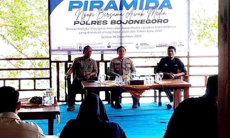 BOJONEGORO – DN | Dalam rangka mempererat hubungan kemitraan dan sinergitas dengan insan pers, Polres Bojonegoro menggelar kegiatan Piramida dan Cangkrukan Kamtibmas bersama awak media, Selasa (16/12/2025). Kegiatan ini dilaksanakan sebagai upaya menciptakan situasi keamanan dan ketertiban masyarakat (Sitkamtibmas) yang kondusif menjelang Natal 2025 dan Tahun Baru 2026.