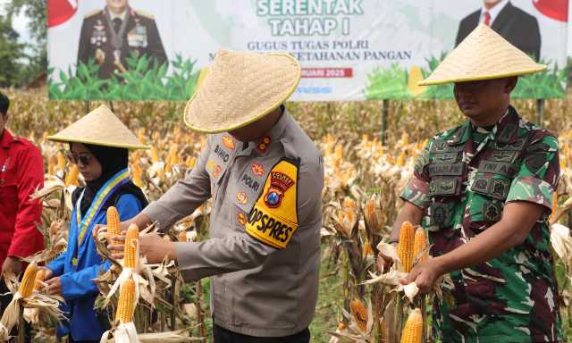 Kapolres Kediri AKBP Bimo Ariyanto S.H., S.I.K, menuturkan panen raya jagung serentak tahap I dalam rangka mendukung swasembada pangan tahun 2025.