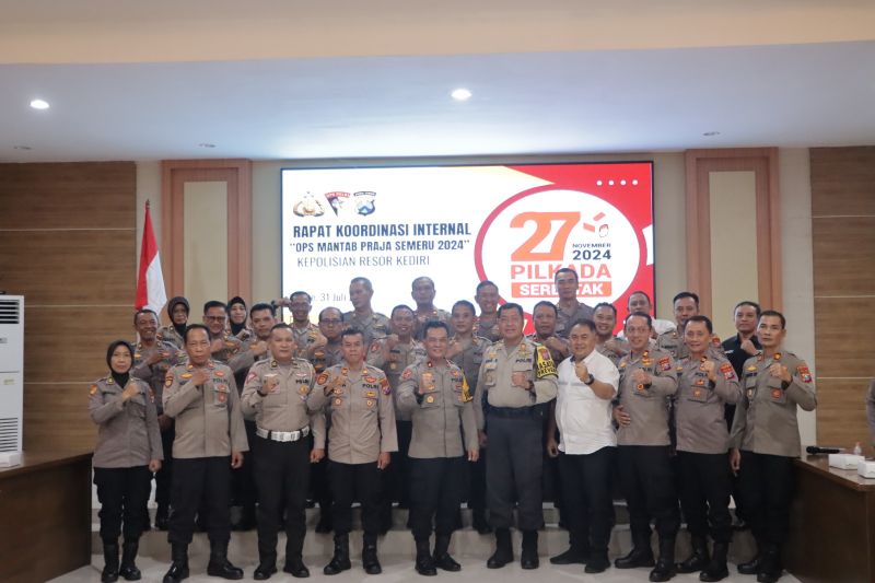 KEDIRI |DN – Sebagai upaya mengantisipasi gangguan pada Pilkada serentak yang akan dilaksanakan pada tanggal 27 November 2024 mendatang, Polres Kediri Polda Jatim menggelar rapat koordinasi (rakor) internal Operasi Mantab Praja Semeru tahun 2024.