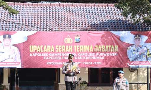 KEDIRI | DN – Polres Kediri menggelar upacara serah terima jabatan (Sertijab) tiga Kapolsek, sebagai upaya meningkatkan kinerja. Upacara Sertijab dipimpin langsung oleh Kapolres Kediri AKBP Bimo Ariyanto S.H., S.I.K, di Mapolres setempat, pada Kamis 24 April 2025, pagi.
