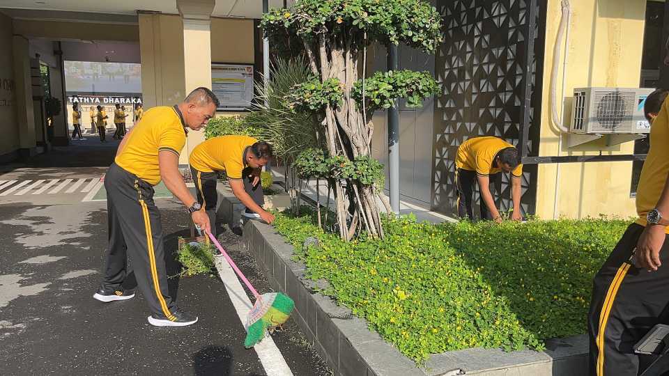 KEDIRI KOTA | DN – Usai melaksanakan olahraga bersama, Polres Kediri Kota menggelar kegiatan kerja bakti membersihkan lingkungan kerja pada Jumat (6/2/2026). Kegiatan ini dilaksanakan sebagai bentuk dukungan terhadap Gerakan Indonesia ASRI (Aman, Sehat, Resik, dan Indah).