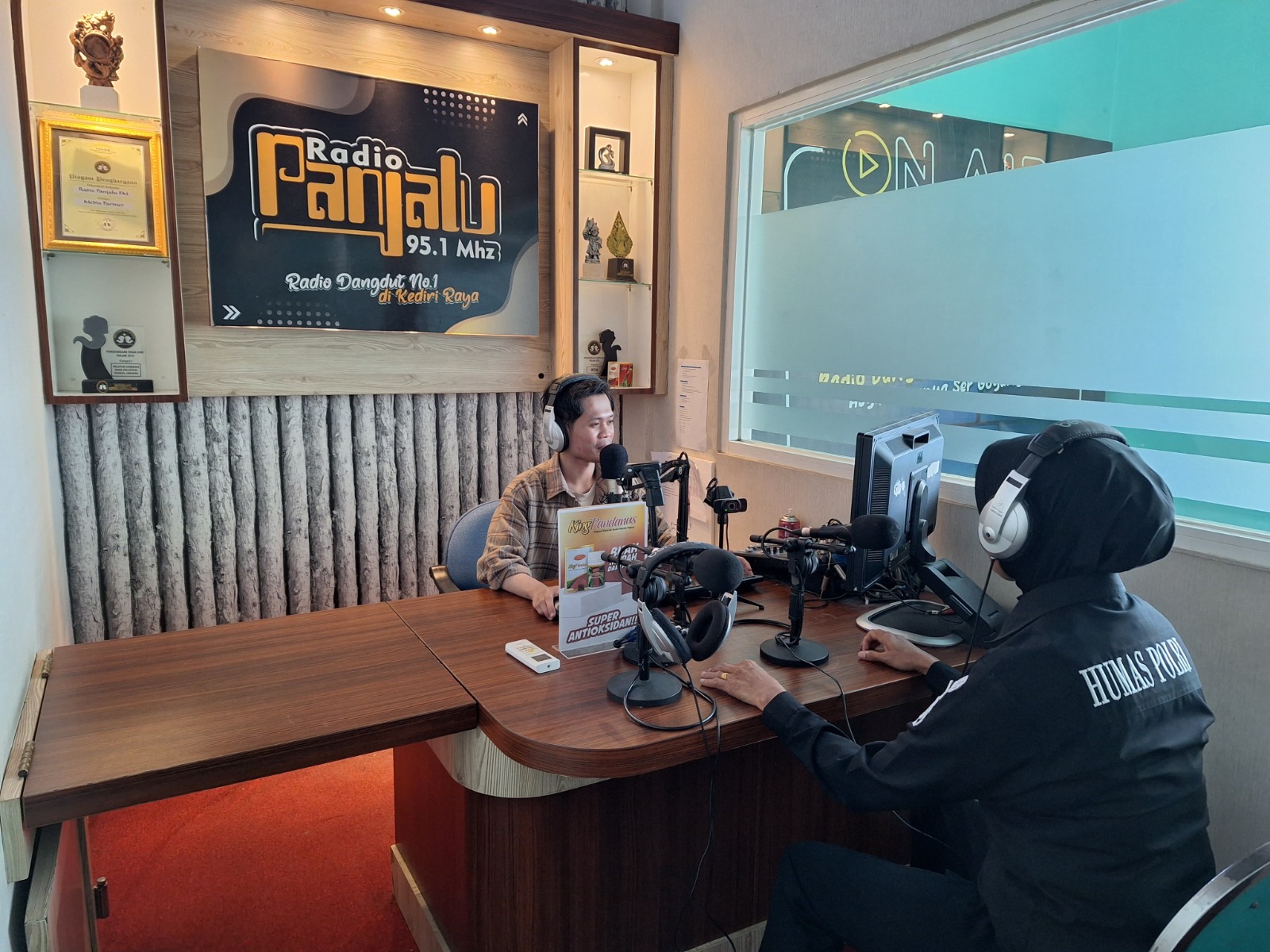 KEDIRI | DN – Sebagai upaya meningkatkan kesadaran masyarakat mengenai bahaya penyalahgunaan narkoba dan dampak negatif media sosial, Polres Kediri Polda Jatim melalui Kasihumas AKP Sriati, S.H., mengadakan talkshow di Radio Panjalu FM.