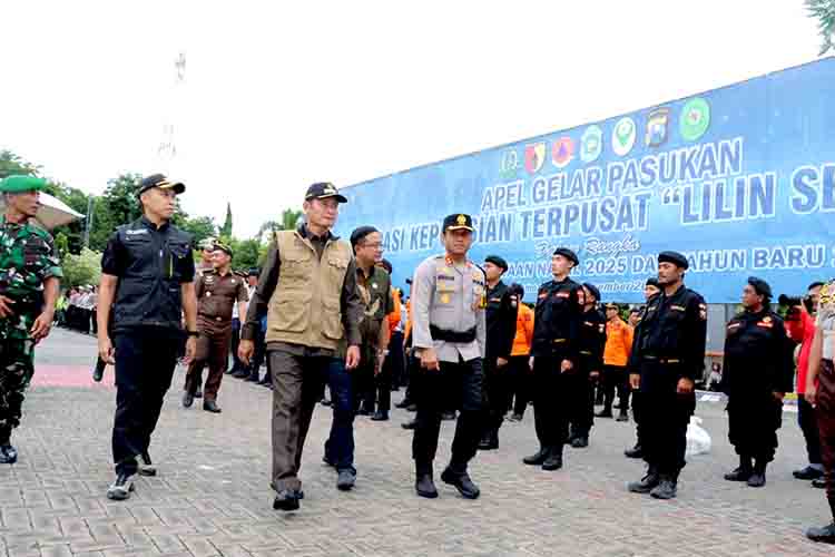 LAMONGAN | DN – Menjelang perayaan Natal 2025 dan Tahun Baru 2026, Polres Lamongan menggelar Apel Pasukan Operasi Lilin Semeru 2025 sebagai bentuk kesiapan pengamanan. Apel berlangsung di Lapangan Alun-alun Lamongan pada Jumat (19/12) sore, dipimpin langsung oleh Bupati Lamongan, Dr. H. Yuhronur Efendi, M.BA, M.Ek, bersama jajaran Forum Koordinasi Pimpinan Daerah (Forkopimda).