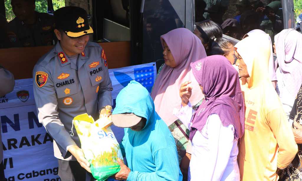 Dalam kegiatan tersebut, Kapolres Ngawi AKBP Charles Pandapotan Tampubolon secara langsung menyerahkan bantuan beras SPHP kepada masyarakat.
