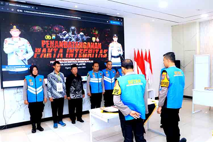 NGAWI – DN | Polres Ngawi Polda Jatim menggelar kegiatan penandatanganan pakta integritas bagi calon siswa (casis) Brimob yang tengah mengikuti tahapan seleksi di lingkungan Polres Ngawi, pada Rabu (19/11/2025)