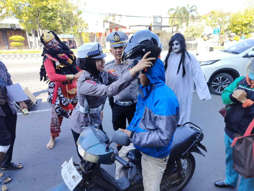 Dengan menampilkan tokoh pewayangan, yakni Gatotkaca,Punokawan dan Raksasa di jalan raya untuk mengajak pengendara patuh dan disiplin dalam berkendara.