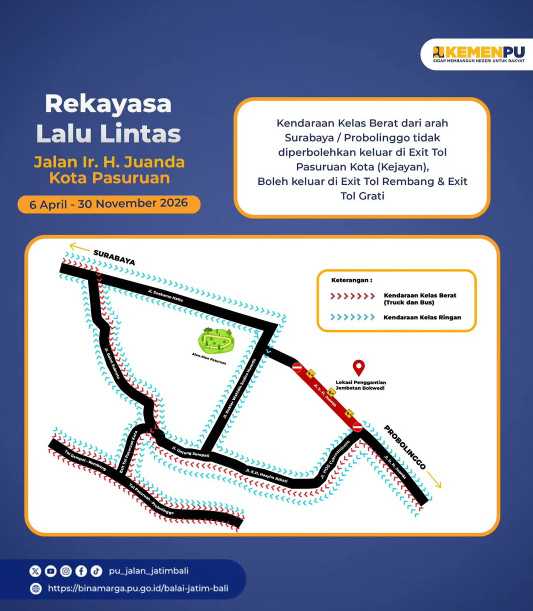 Kebijakan ini dilakukan sebagai dampak dari pembongkaran Jembatan Bok Wedi yang terletak di Jalan Raya Ir H Juanda, Kelurahan Blandongan, Kecamatan Bugulkidul, Kota Pasuruan, menjadi akses vital bagi masyarakat.