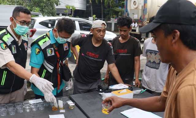 Sebanyak 43 orang pengemudi angkutan baik penumpang maupun barang dilakukan tes urine di dua lokasi.