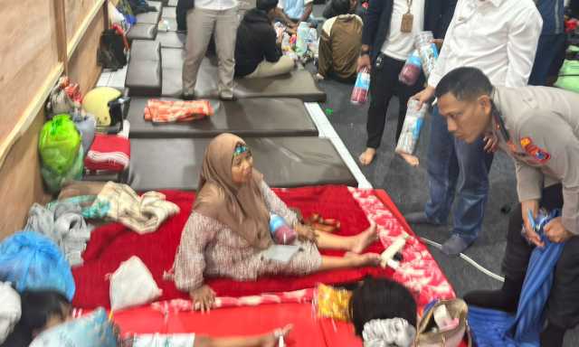 Pembagian bantuan berlangsung di posko terpadu dan area tunggu pelabuhan yang sementara dijadikan tempat penampungan sementara.