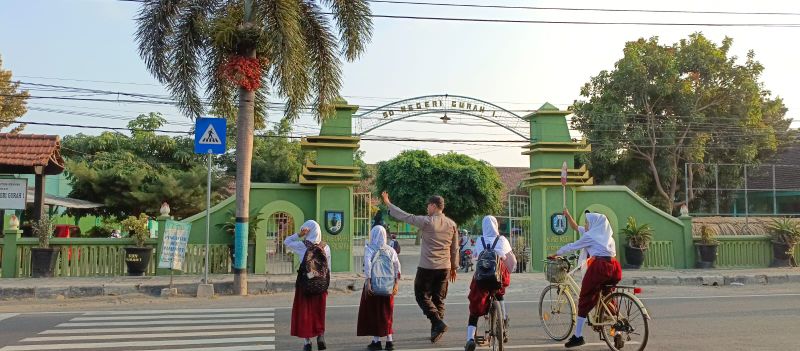 Dalam kegiatan tersebut, petugas Kepolisian tak hanya mengatur arus lalu lintas, tetapi juga aktif membantu anak-anak sekolah dan warga yang hendak menyebrang jalan.