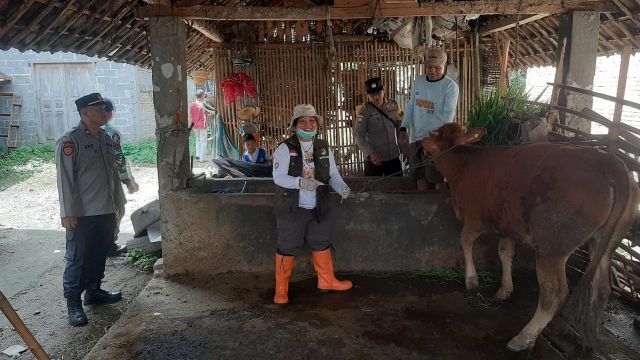 Kegiatan dipimpin langsung oleh Wakapolsek Kepung Iptu Eko Hari C. bersama tim vaksinator dari Pusat Kesehatan Hewan (PusKeswan) Pare.