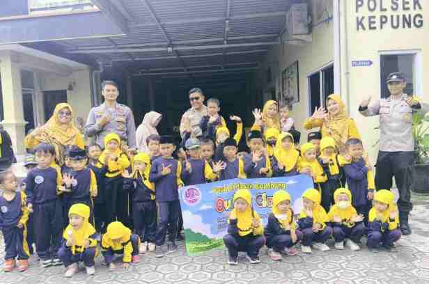 KEDIRI | DN – Polsek Kepung Polres Kediri menerima kunjungan dari siswa-siswi PAUD Al Hasan Brumbung, Rabu (5/2/2025).