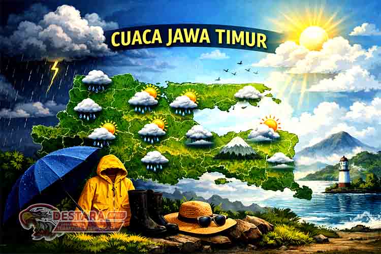 SURABAYA | DN – Badan Meteorologi, Klimatologi, dan Geofisika (BMKG) kembali merilis prakiraan cuaca untuk wilayah Jawa Timur pada Rabu, 29 April 2026. Kondisi atmosfer diperkirakan masih dipengaruhi musim pancaroba, dengan dominasi hujan ringan serta langit berawan di sejumlah daerah.